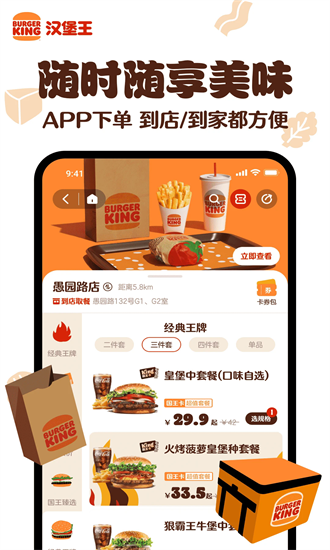 汉堡王中国app是一款专门为用户提供便捷餐饮服务的移动应用,通过数字化手段提升用户的用餐体验。该软件不仅支持自助订餐和送餐,还为用户提供各种促销活动,帮助他们在享受美食的同时省钱。有了这款app,你可以随时随地轻松下单,享受美味的汉堡、薯条等美食,满足不同口味的需求。