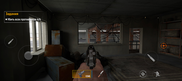 2、操作方面,玩家可通过左下方的虚拟摇杆控制角色移动方向;而右侧则配备了攻击、装填子弹、下蹲等功能按键,战斗操作一目了然。