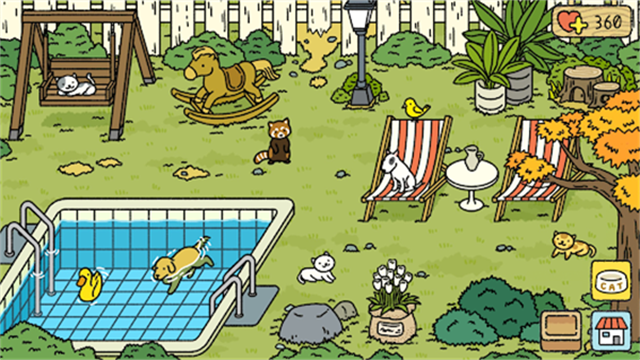 用你的爱去购买你最喜欢的家具、装饰品和猫。根据自己的喜好布置房间和花园的家具。猫会在你的家里玩耍,花园里不同的东西会吸引不同的小动物