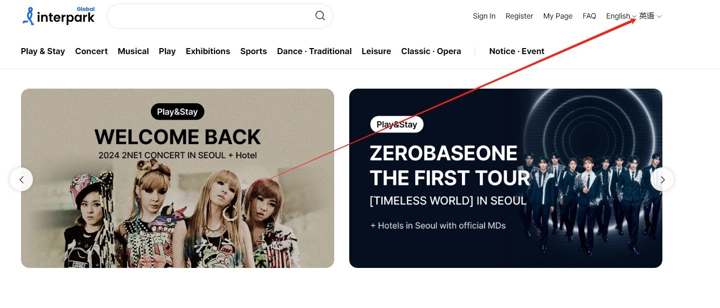 《interpark global国际版》怎么设置中文(2025.7.22更新)