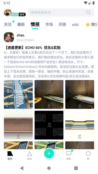 装备前线是一款专为热衷于装备的 Z 世代游戏玩家设计的社区软件。在这个社区中,玩家可以分享来自不同国家的定制键帽和定制键盘的相关信息,帮助用户获取第一手的信息来源。同时,装备前线软件还允许用户购买所需的高端装备,如定制键盘、键帽和鼠标,帮助用户打造自己的装备空间。此外,装备前线的界面设计非常简洁,去除了不必要的功能弹窗,只保留了最核心的内容,让用户能够沉浸式地享受他们的科技潮流产品。