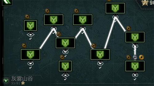 在『战斗』闯关模式中,每一关都设定了关卡的难度分级,在『开始任务』前,玩家可以在『装载』中选择战斗中所使用的武器,点击可进行筛选,最多只能带三样武器,需要按等级解锁,点击『前往部队』可查看地面部队类型以及装载的武器。