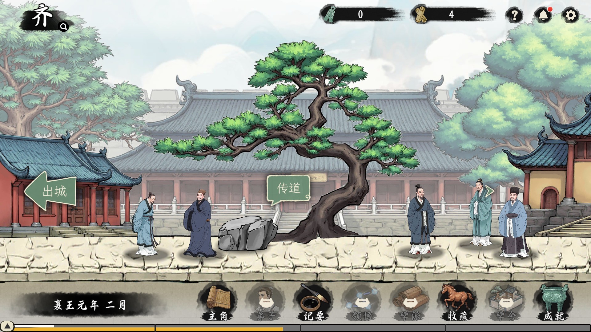 9、此外游戏还有各种不同的城市,玩家可以出城自由探索,为了传播自己的理念,快来与诸子百家辩论吧!