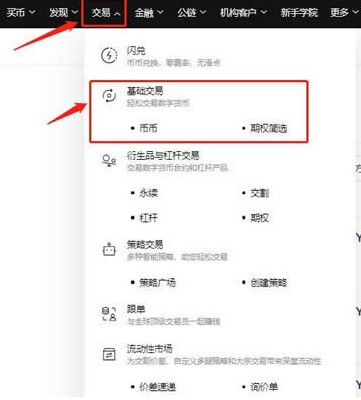 1,点击首页的交易--基础交易,进入交易页面;