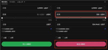 3、输入卖出USDC数量,点击卖出USDC就可以换成USDT了