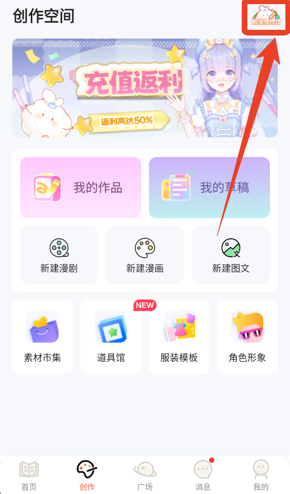 1)【创作】右上角的【触漫博物馆】,点击进入。