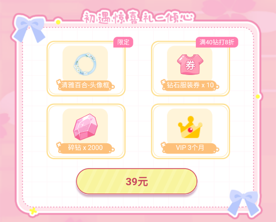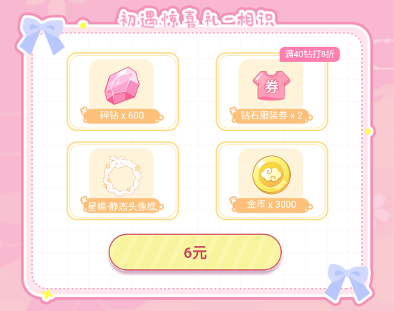 新手礼包的6元档和39元档会赠送大量的碎钻,仅限于新注册的用户参加。
