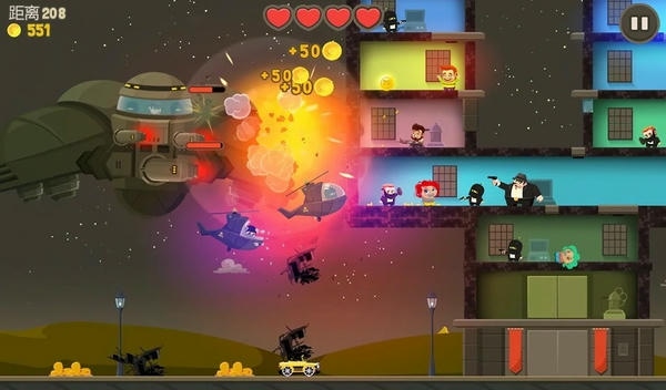 通过灵活的操作和明智的思考,你可以冲进高楼去解救更多被囚禁的人类,并消灭所有的外星人。从整体体验来看,游戏玩法与背景形成了鲜明的对比。可爱的卡通角色,结合了街机动作游戏中的休闲、跑酷和冒险元素,营造出一天的氛围,在形式上为玩家提供了前所未有的新奇体验。