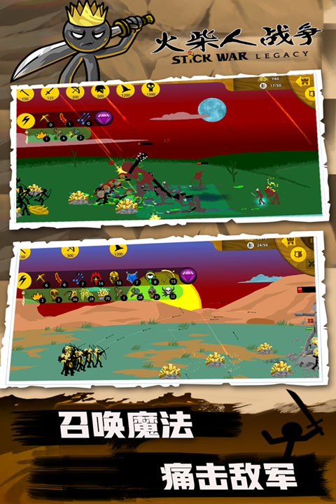 火柴人战争是一款紧张刺激的动作格斗类手游,以经典的火柴人为角色形象,打造一支属于你的火柴人军队,合理的规划策略和战斗准备,四处征战来抢夺更多的装备和资源,还可以学习其他玩家的战斗技巧。丰富的关卡挑战,每一个关卡都设置有不同的对战玩法,在战斗的过程中提升你的技术。多种不同风格的场景地图,还有武器和道具都可以随意搭配,提升军队的实力。还有更多有趣的玩法模式等你来解锁。