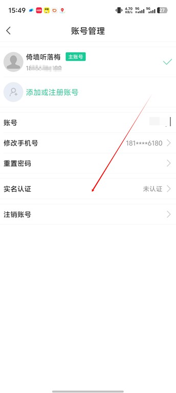 2、然后点击实名认证。