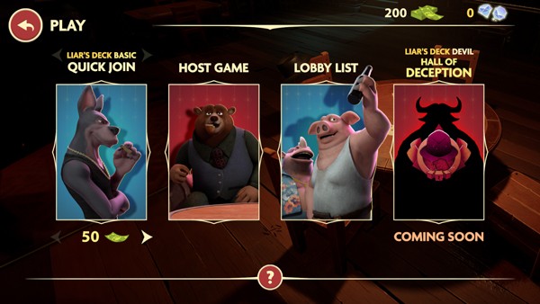 骗子酒馆是一款非常热门的联机卡牌策略游戏,游戏中玩家需要通过轮流出牌来进行游戏,玩家需要通过自己的行为来欺骗你的对手,让其他玩家不要猜透你的心思,你也需要去观察,去质疑那些可能出假牌的玩家,游戏的玩法非常的刺激,非常考验玩家的伪装能力,还加入了俄罗斯轮盘惩罚体验,增加了游戏的刺激性,玩法非常的简单,游戏的沉浸感非常强!