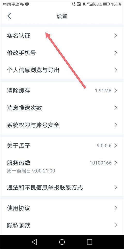 1、用户买车前需要进行实名认证,实名认证可以通过进入软件的【我的】页面中点击页面右上角的设置图标(下图红色箭头所指)。