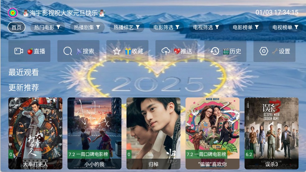 1. 针对大屏幕电视进行了优化,界面简单,操作流畅。你可以很容易地观看电视连续剧。智能分级系统按类型、地区、年份等多个维度进行精准分级,更方便用户查找影片。