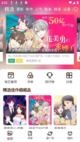 2. 主页采用智能瀑布流设计。系统会根据你的阅读习惯自动推荐风格相近的作品。该APP收录了超过5万部官方漫画,涵盖了从日本经典漫画到中国原创漫画的所有内容。它支持下载和同步进度。