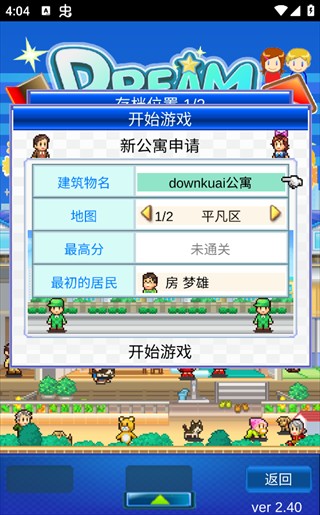 接下来,你需要申请一个新公寓,选择公寓的名称、地图区域以及最初的居民,根据你的喜好,设定这些初始参数。