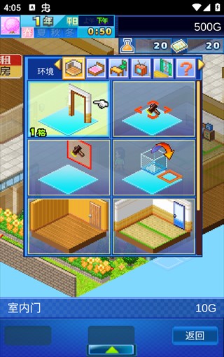 点击“设置”,你可以为公寓添加各种家具和设施,例如门、床、桌子、电视等,帮助提升公寓的舒适度和居民的满意度。