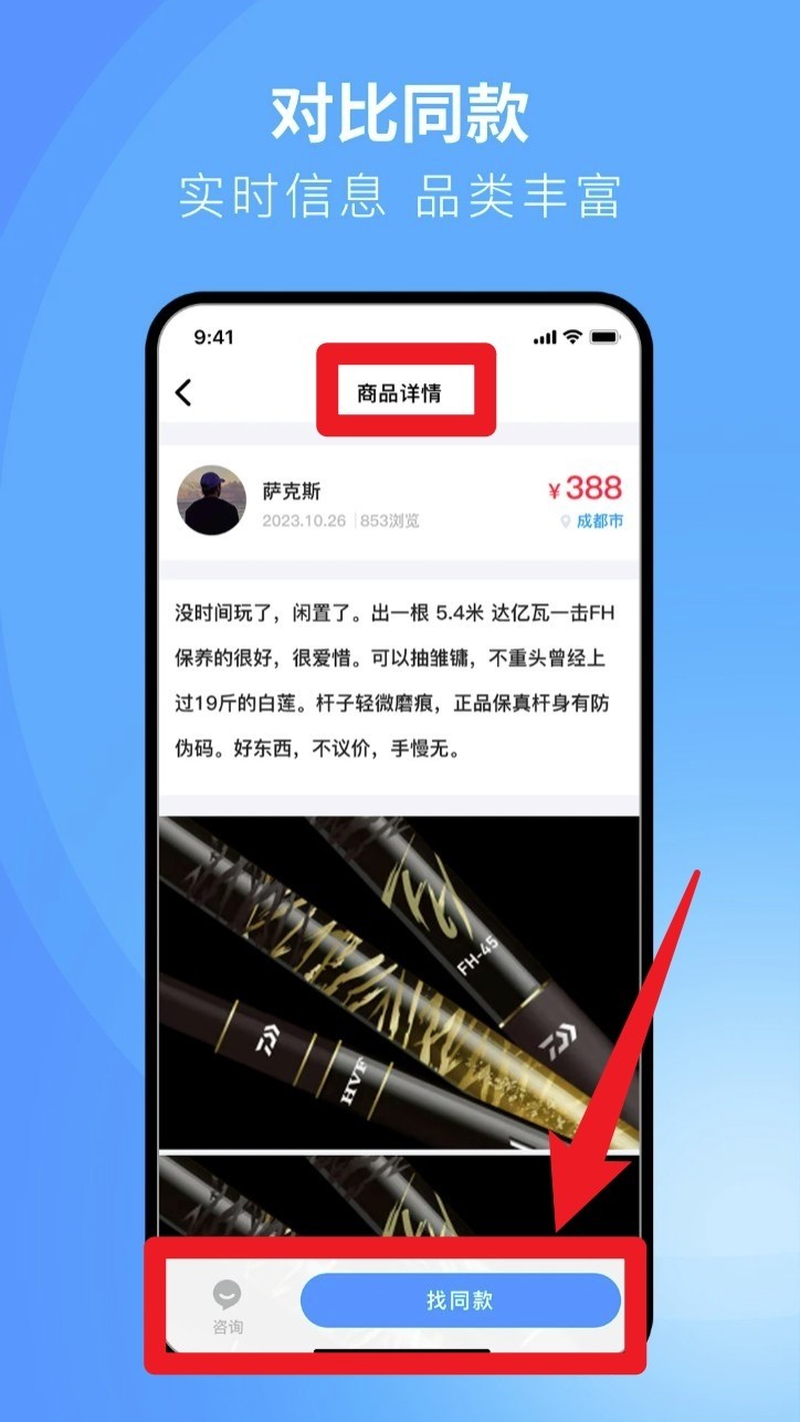 4.浏览商品时点击任一物品进入详情页,页面下方可点击“找同款”查看同类产品,方便对比价格与成色,提升选购效率。