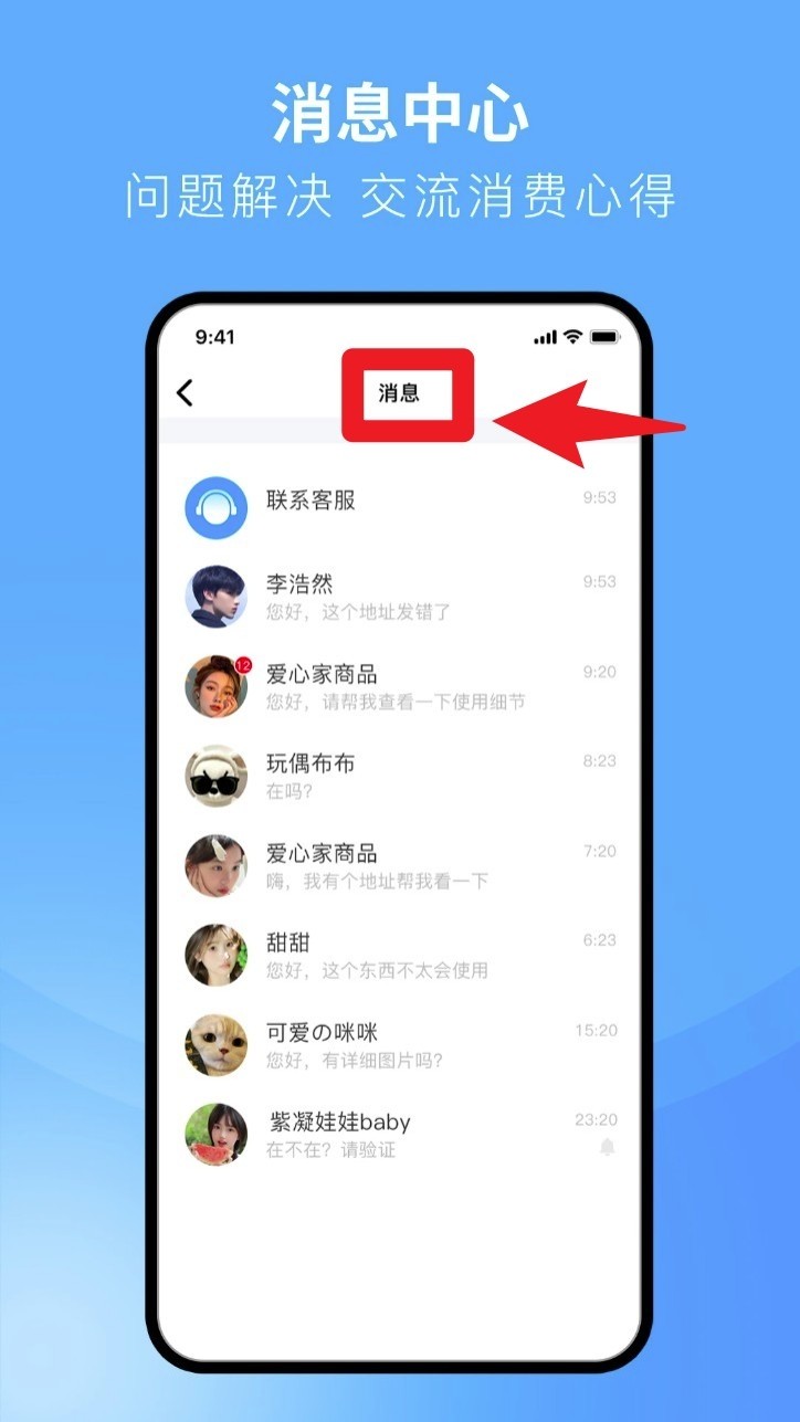 5.若有疑问可点击右上角“消息”按钮进入对话界面,查看卖家回复、联系客服或与社区用户交流,处理交易沟通更加便捷。