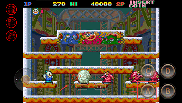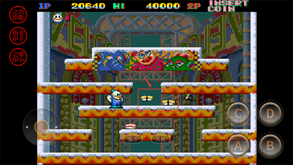 1. 在雪人兄弟双人手机游戏中,你可以用冰块攻击你的对手,也可以获得一些生命,药物和积分。