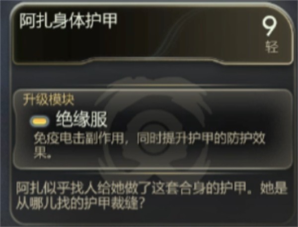 建议:主用“影融织物”构筑刺客流,若关卡中敌人普遍带能量武器,再切换为“绝缘服”。