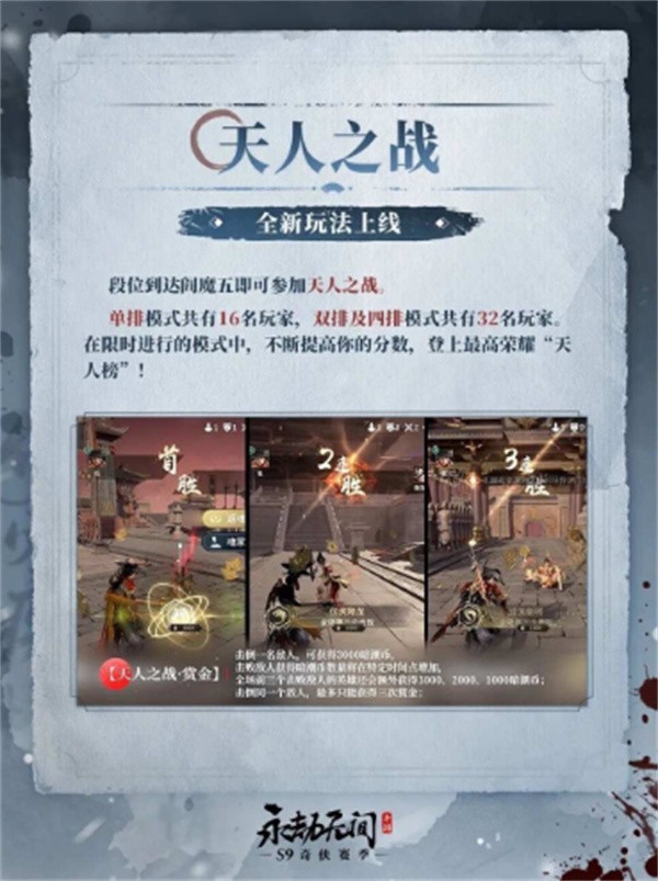 天人之战模式:阎魔五段位以上开放,角逐“天人榜”最高荣耀。