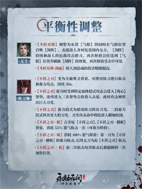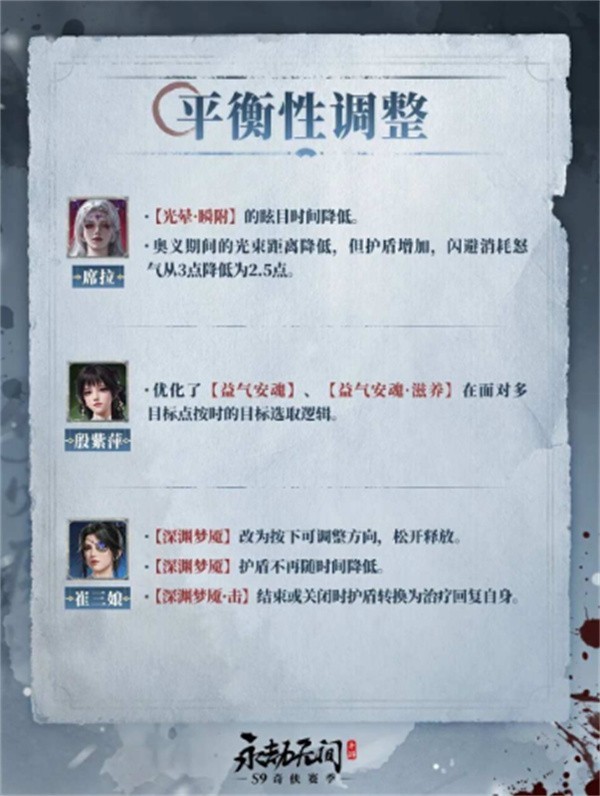 英雄平衡调整:无尘、妖刀姬、魏轻、万钧、席拉、殷紫萍、崔三娘等角色迎来数值优化。