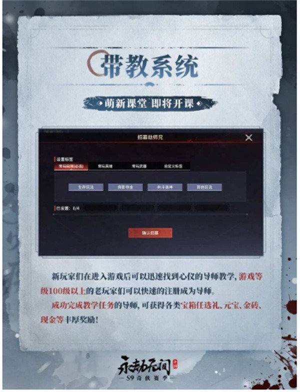 带教系统上线:导师完成任务可获宝箱、元宝、金砖等奖励。