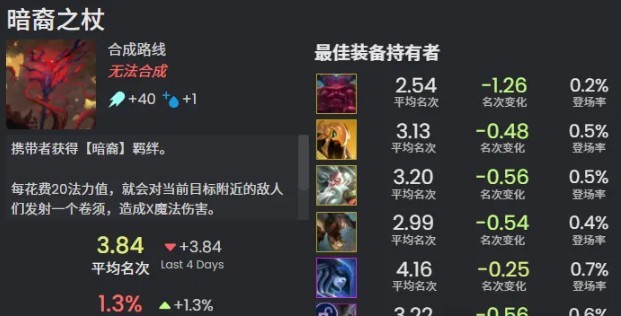 暗裔之镰:每4秒,斩击邻格的敌人们,造成100%攻击力的物理伤害。在参与击杀后或在携带者冲刺时,再次斩击。冲刺冷却时间:1.5秒