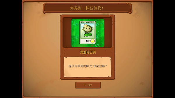 5、最后成功抵御主所有僵尸的进攻即可进入下一关,并解锁新的植物;