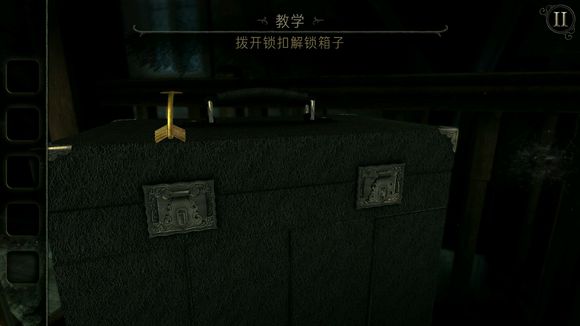11、钥匙可以改变方向,说明肯定有另外一个钥匙洞,我们去找另一个钥匙洞,就是下图,同样需要向左划开,调整钥匙方向打开之后,我们得到一把雕刻刀,提示说似乎可以作为扳手。
