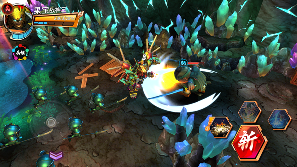 4、进入游戏如图,玩家需操纵果宝机甲同敌人战斗;