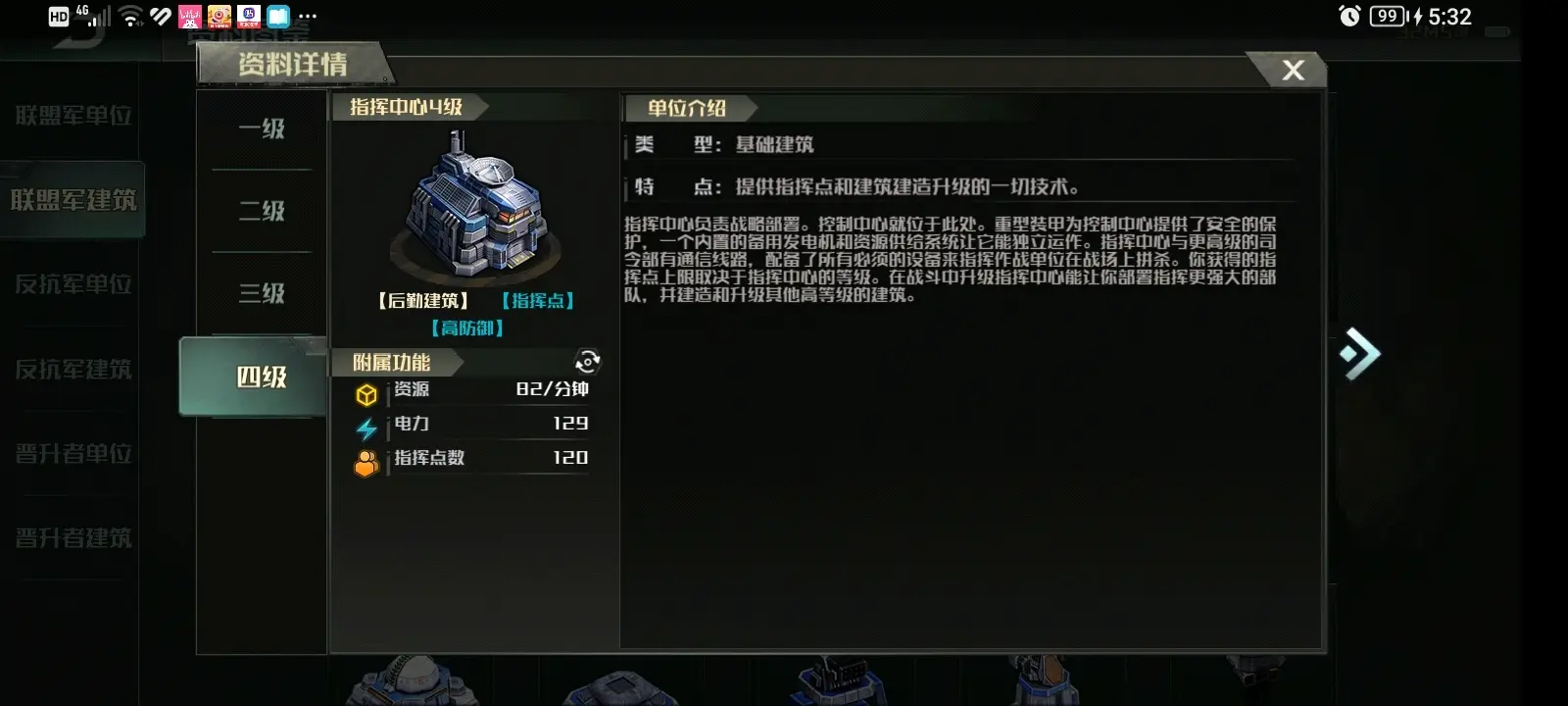 4级:提供:82资源/分钟,129度电,120点资源点数