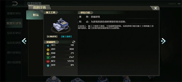 建筑部施工工地的生命和护甲都是:5970血,84甲